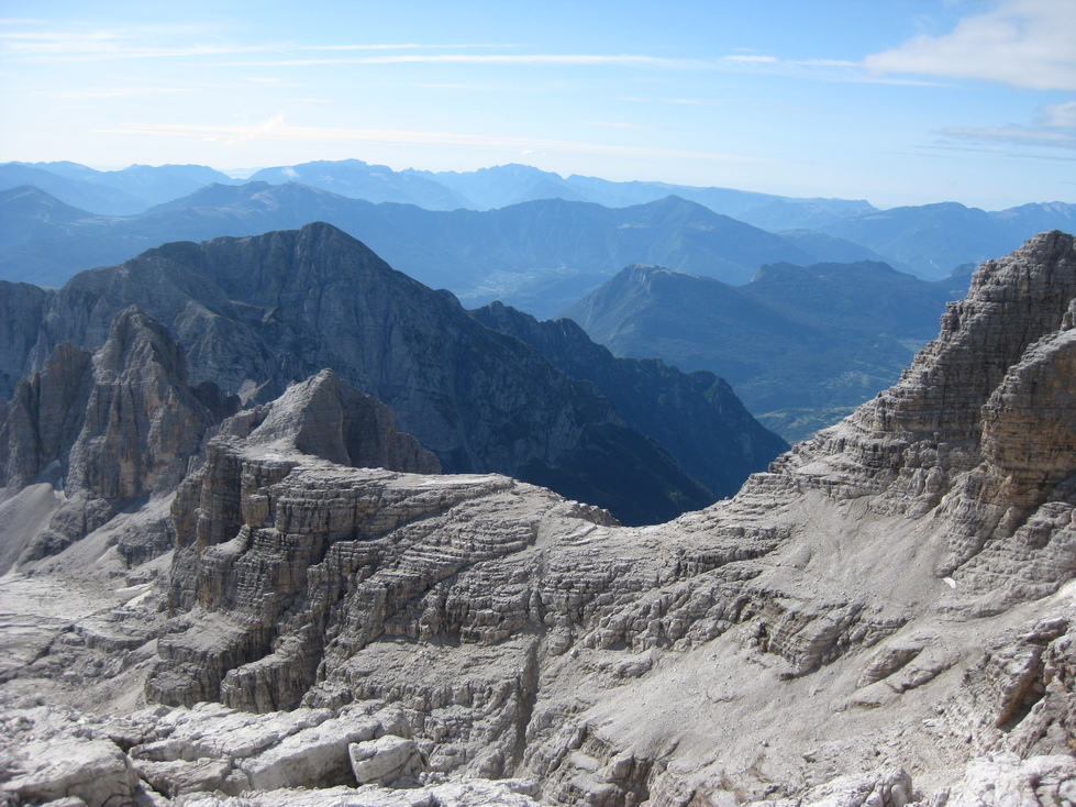 | A first view of the Brenta Dolomites and Cima Tosa. |